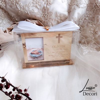 Podaruj bliskim wyjątkową pamiątkę w postaci eleganckiej ramki w lustrzanym kolorze. Ramka pozwala umieścić zdjęcie dziecka oraz dedykowane słowa skierowane do dziadków, chrzestnych lub innych ważnych osób. Jej subtelny, a jednocześnie elegancki design sprawia, że staje się nie tylko ozdobą, ale także trwałą pamiątką, którą można postawić na półce lub biurku. To doskonały sposób, aby wyrazić miłość, wdzięczność i podziękowania w wyjątkowy sposób. Idealna na okazje takie jak chrzciny czy komunia.
