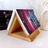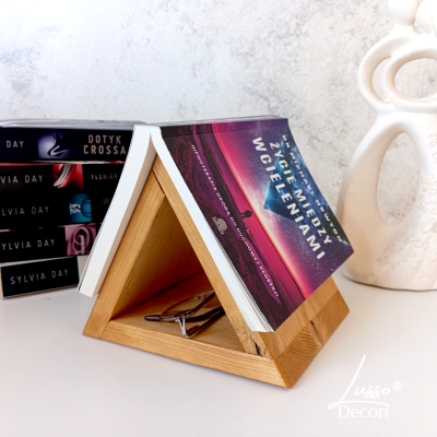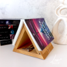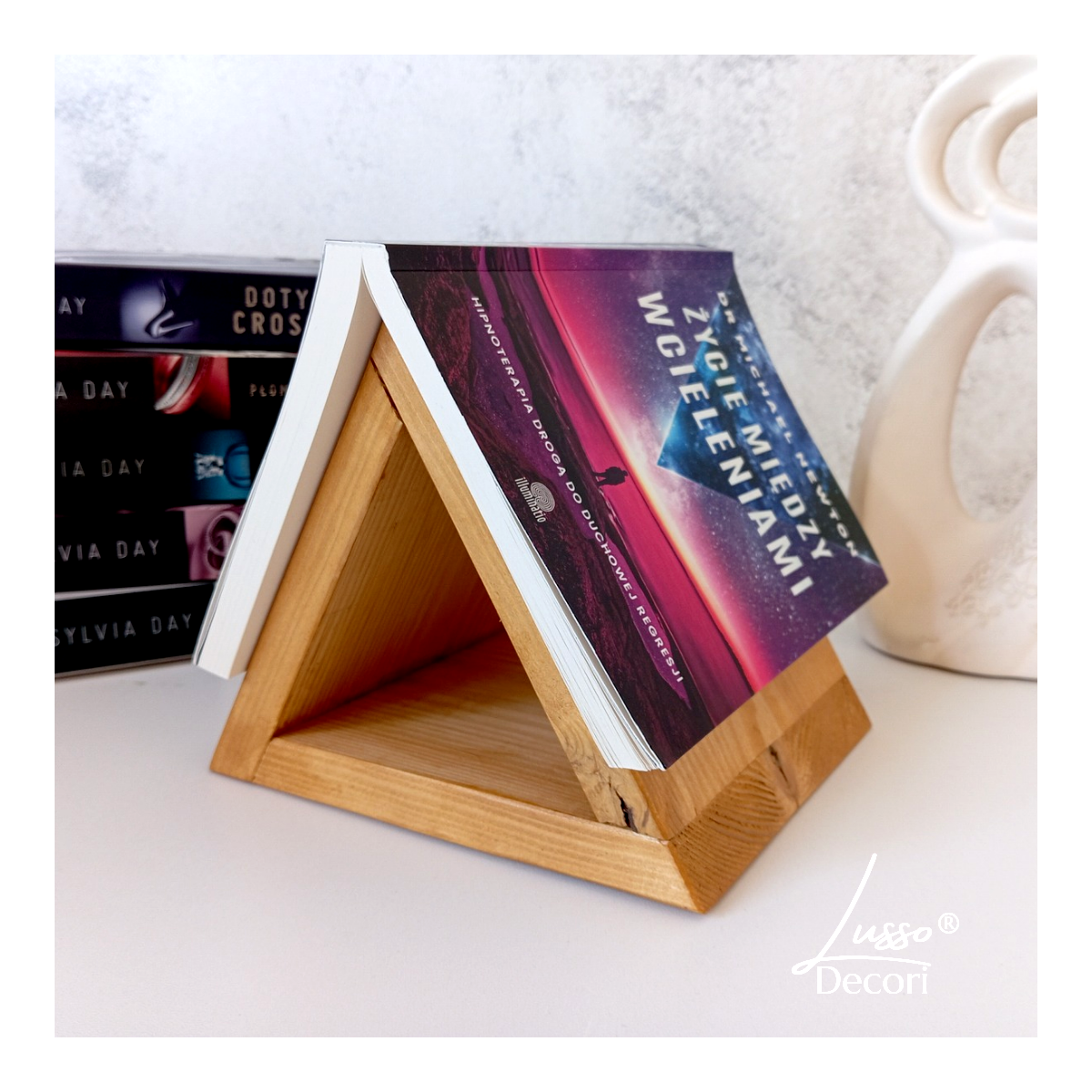 Drewniany stojak na książki w trójkątnym kształcie z możliwością indywidualnego graweru – stylowy i funkcjonalny dodatek do domu, idealny do przechowywania książek, telefonu czy drobiazgów.
