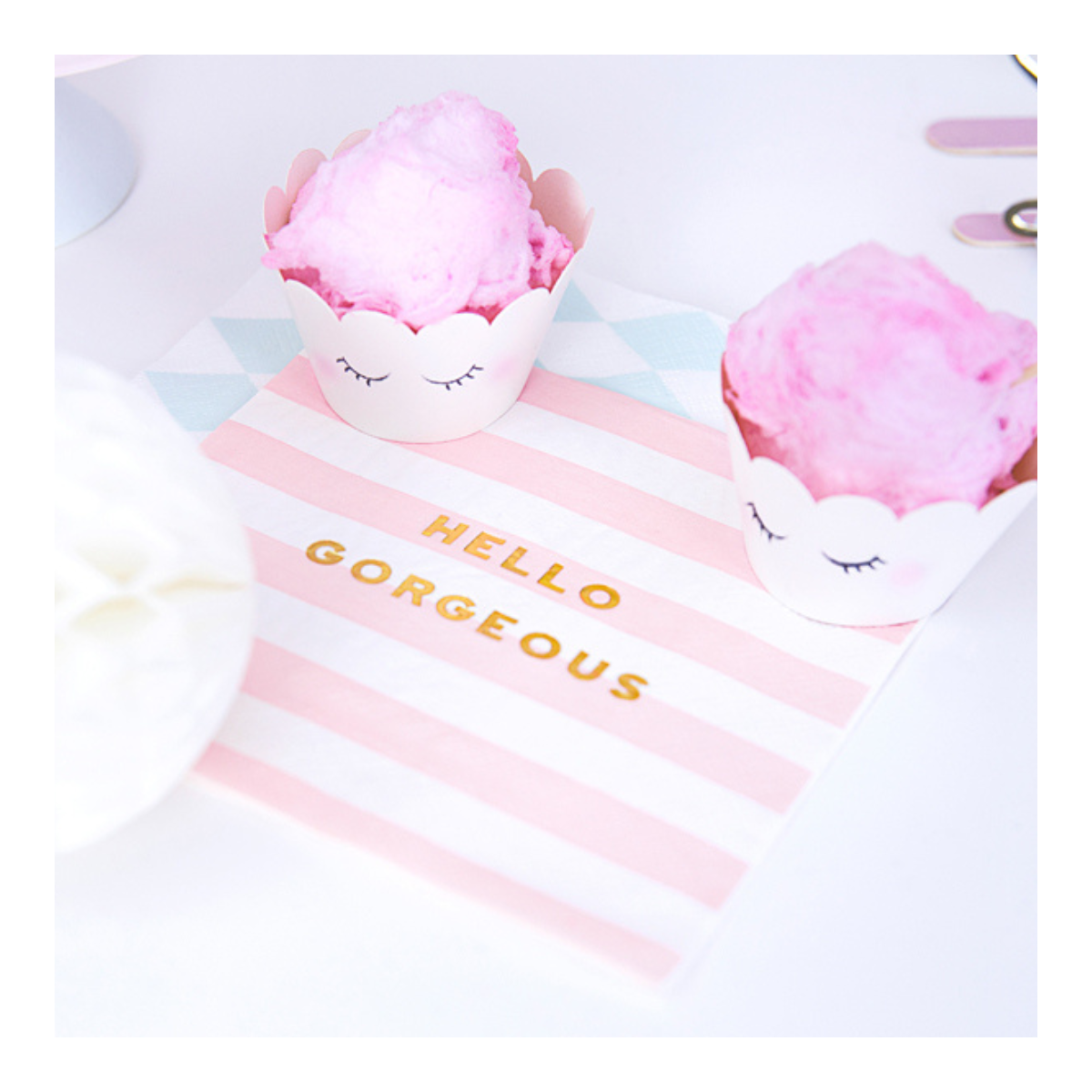 Serwetki papierowe Yummy to niezwykle uroczy dodatek do aranżacji stołu. Trójwarstwowe, solidne i łatwe w użyciu sprawią, że Twoje przyjęcie będzie wyjątkowe. Zestaw zawiera 20 serwetek w białym kolorze z jasnoróżowymi paskami i złotym napisem "Hello Gorgeous". Ten motyw wprowadzi niepowtarzalny, bajkowy klimat i na pewno przyciągnie uwagę Twoich gości. Serwetki są idealne na Baby Shower, urodziny, roczek dziewczynki oraz wiele innych okazji. Połączone z różowymi dodatkami do dekoracji stołu, stworzą wspaniałą, spójną całość. Spraw, aby Twoje przyjęcie było niezapomniane z serwetkami papierowymi Yummy!