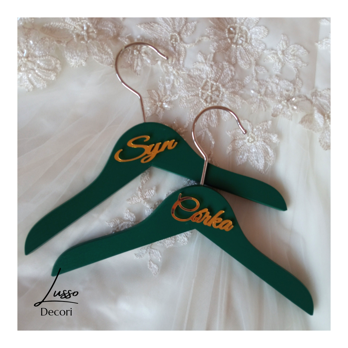 Wieszak dziecięcy w kolorze butelkowej zieleni z napisem „Syn” to stylowy dodatek, który idealnie wpisuje się w klimat uroczystości takich jak ślub, chrzest czy komunia. Zaprojektowany z myślą o najmłodszych uczestnikach ceremonii, pozwala w wyjątkowy sposób wyeksponować dziecięcą stylizację i podkreślić rangę wydarzenia.