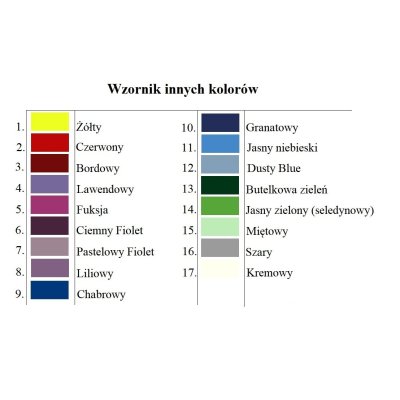 W przypadku wyboru opcji "Inny kolor" produkty nie podlegają zwrotom gdyż są wykonywane pod zamówienie Klienta.