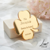 Dzięki eleganckiemu lustrzanemu wykończeniu koniczynka pięknie odbija światło i prezentuje się niezwykle stylowo na stole lub jako pamiątka dla bliskich.