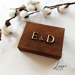 Szkatułka na obrączki - niezbędny element dla wyjątkowego dnia ślubu. Personalizowane lustrzane inicjały i data dodają wyjątkowego uroku, podkreślając znaczenie tego symbolicznego momentu.