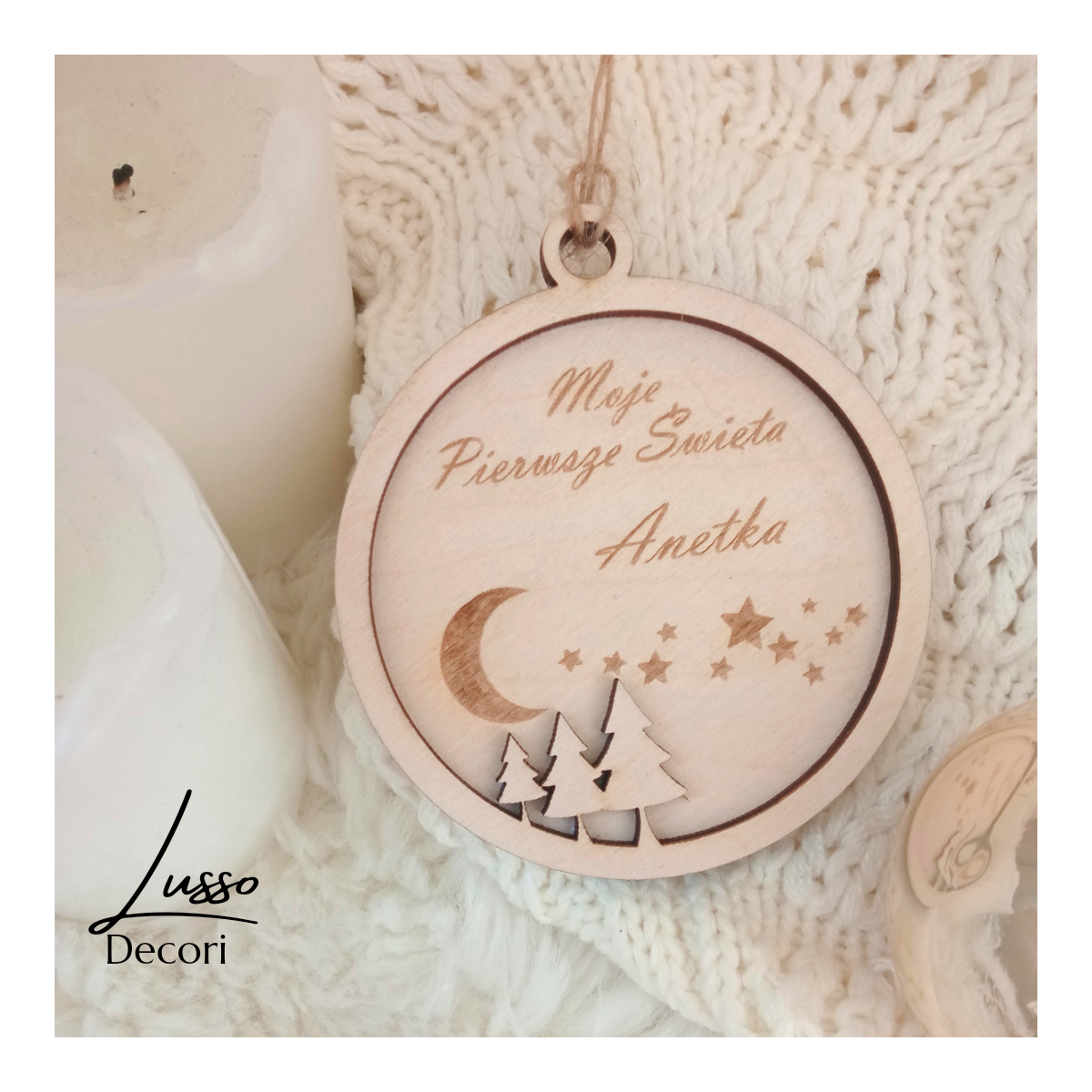 Urokliwa bombka na choinkę z drewna, tworząca magiczny klimat świąt. Idealna dekoracja lub wyjątkowy prezent dla bliskiej osoby