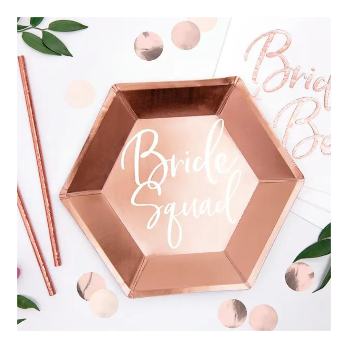 Papierowe talerzyki w kolorze różowo-złotym to idealny dodatek do wieczoru panieńskiego! Ich połyskujący, metalizowany wygląd w połączeniu z oryginalnym kształtem sześciokąta przyciągnie uwagę każdej z gości.